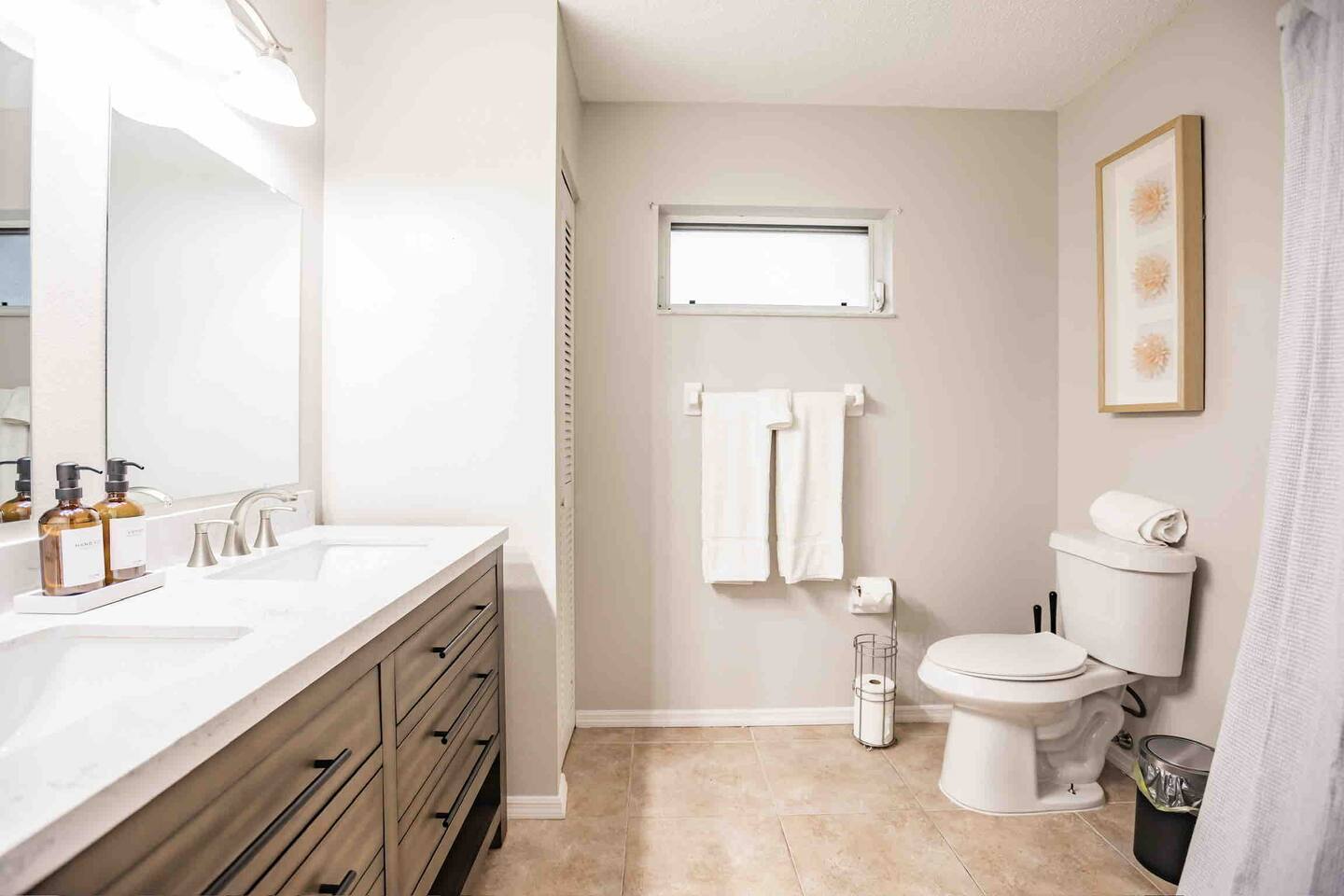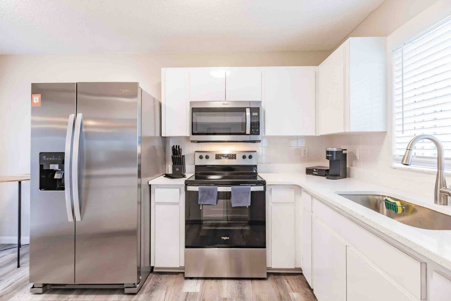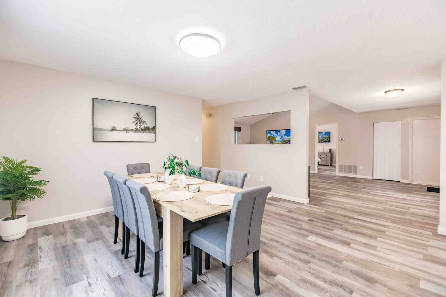Experience comfort and style in our newly renovated 3-bedroom, 2-bath home featuring a spacious living and dining room. Our home includes a refreshing pool, lush backyard, and a fully stocked kitchen. Bed sizes are: 1 king, 1 queen and 2 full.