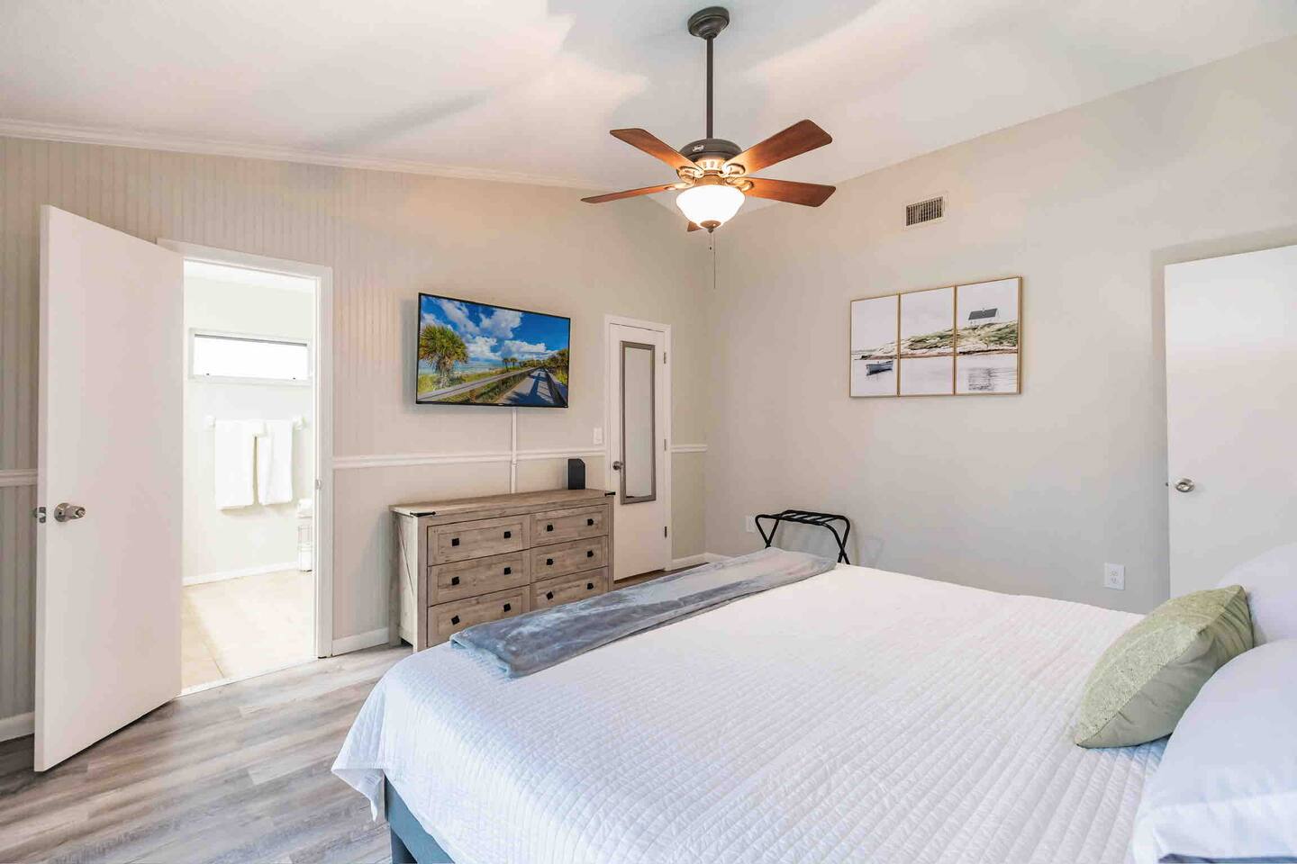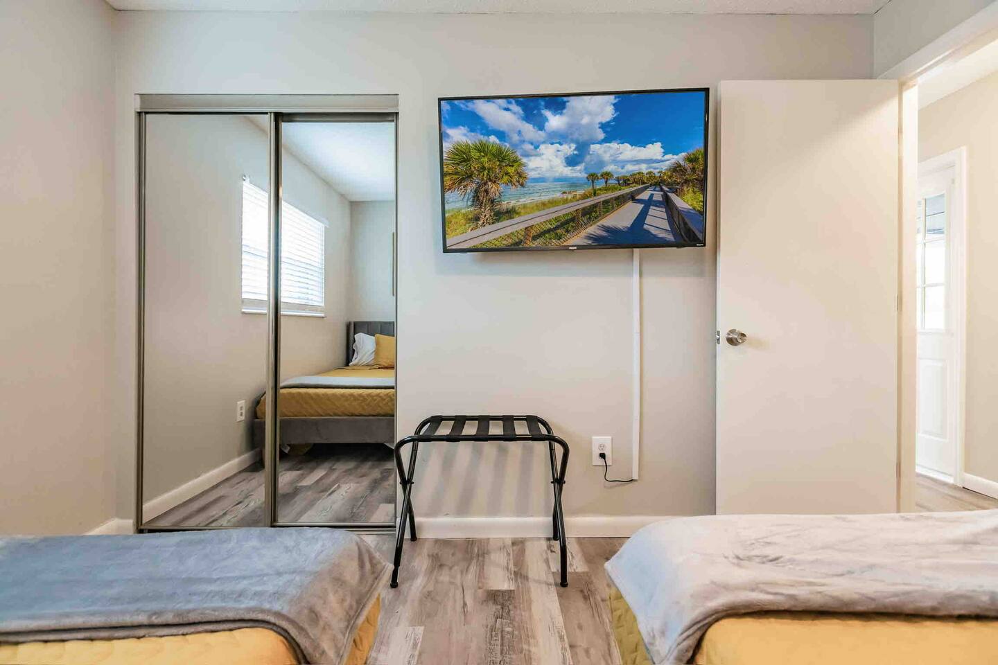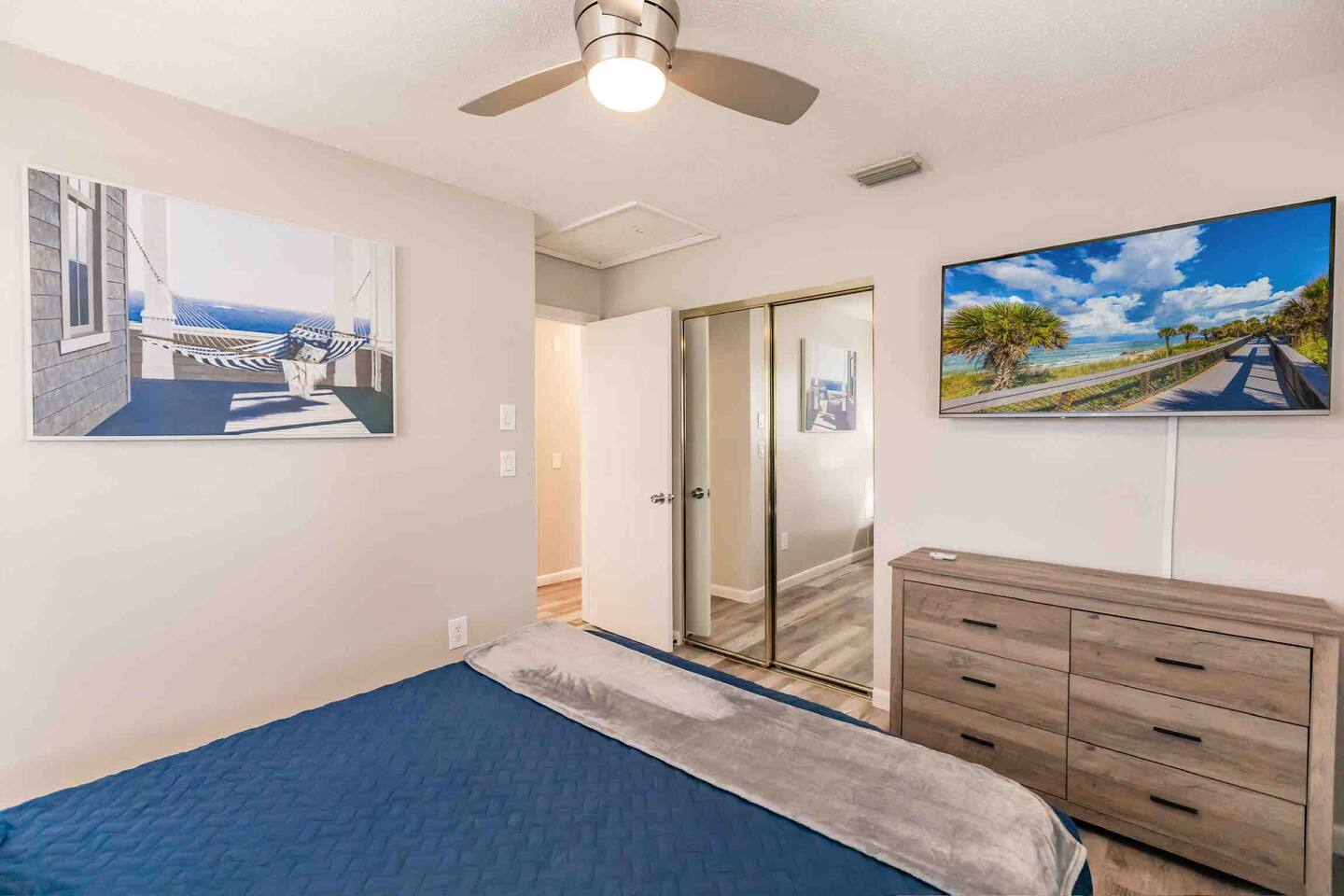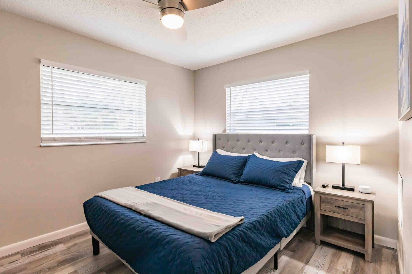 Experience comfort and style in our newly renovated 3-bedroom, 2-bath home featuring a spacious living and dining room. Our home includes a refreshing pool, lush backyard, and a fully stocked kitchen. Bed sizes are: 1 king, 1 queen and 2 full.